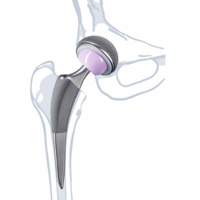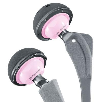 The zirconium nitride top coat yields superior surface hardness that is unmatched in the market place. The wear rate is reduced by up to 65% compared to standard implants. This ceramic surface layer stands for improved scratch resistance, good wettability and for better articulation between bearing surfaces.
